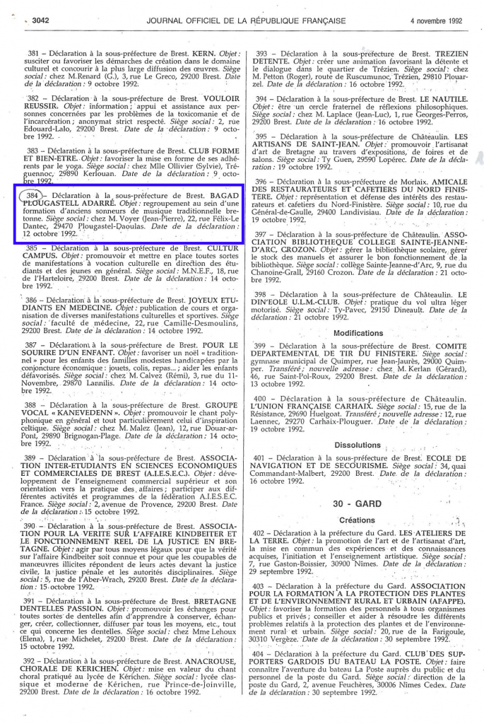 JO 4 novembre 1992 – Bagad Adarre